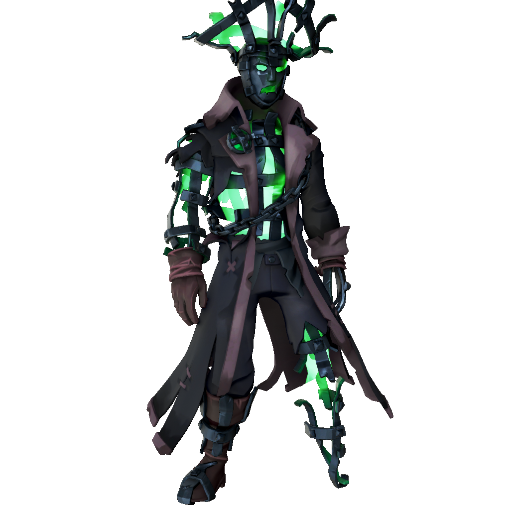 | description | An ethereal ensemble befitting the Soulflame Captain, a terrifying Pirate Legend. |