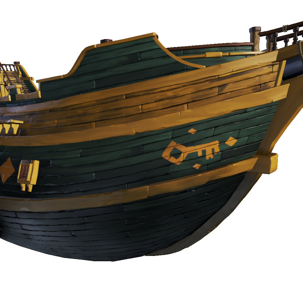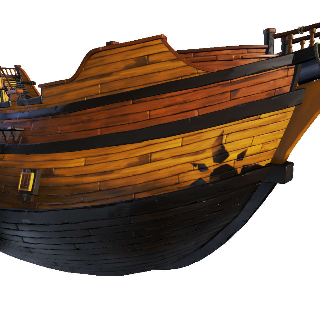 The shining, golden hull of a ship that fought many past battles in the Sea Dogs' Arena.