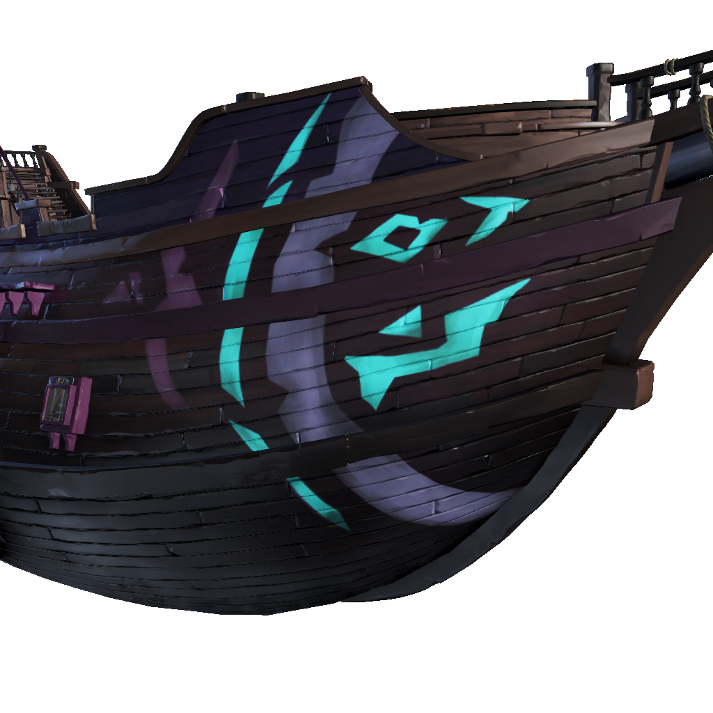 The noble, violet hull of a ship that fought many past battles in the Sea Dogs' Arena.